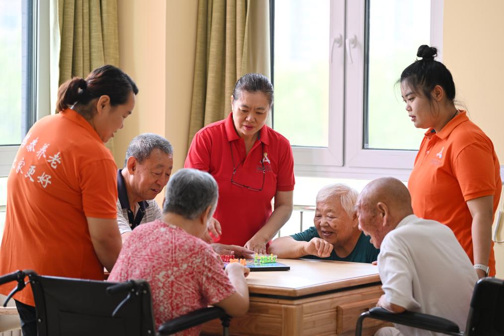 老人們在天津西青區(qū)第一養(yǎng)老院的棋牌室內(nèi)活動。新華社記者李然 攝