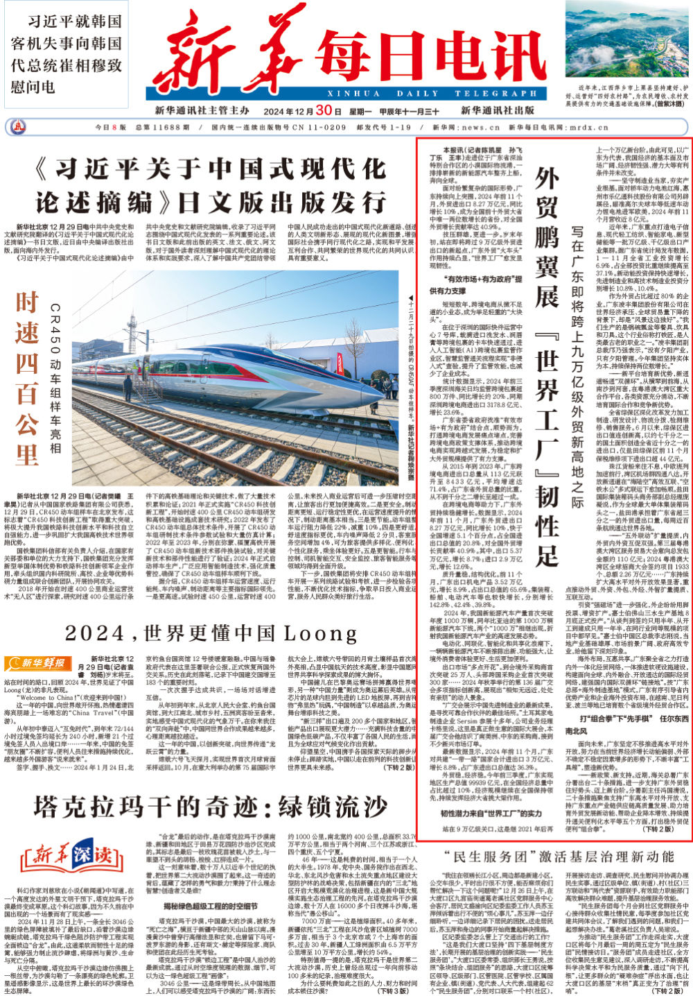 面對紛繁復(fù)雜的國際形勢,廣東持續(xù)向上突圍,2024年前11個月,外貿(mào)進(jìn)出口8.27萬億元,同比增長10%,成為全國前十外貿(mào)大省中唯一兩位數(shù)增長的省份,對全國外貿(mào)增長貢獻(xiàn)率達(dá)40.9%。
