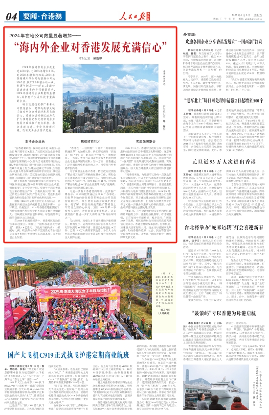 “2024年,在中央政府的堅(jiān)實(shí)支持和特區(qū)政府的開拓努力下,香港經(jīng)濟(jì)根基厚、市場韌性強(qiáng),正在變局中開新格局、穩(wěn)步前行?!闭雇?025年發(fā)展,特區(qū)政府財(cái)政司司長陳茂波充滿信心地表示,香港會繼續(xù)改革創(chuàng)新、搶抓機(jī)遇,加速融入國家發(fā)展大局,更主動(dòng)對接國家發(fā)展戰(zhàn)略,助推香港的經(jīng)濟(jì)、社會、民生等各項(xiàng)事業(yè)取得更好發(fā)展,讓香港“國際大都會”的品牌煥發(fā)新光彩。