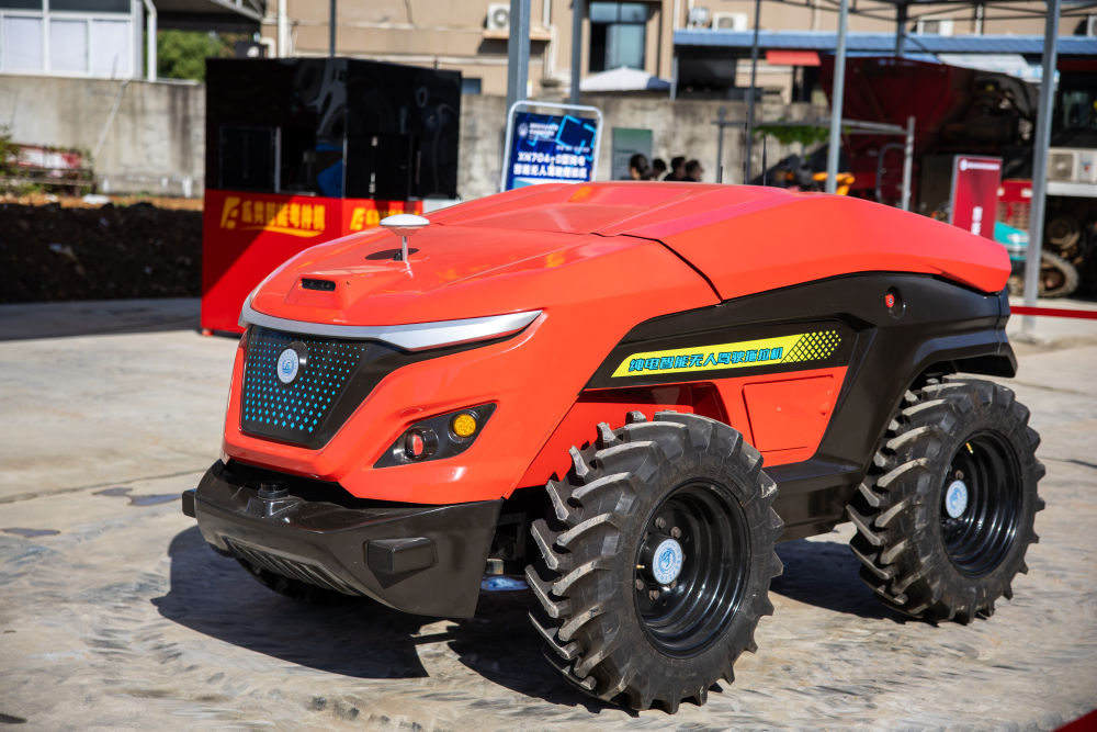 2024年11月26日在湖南省農(nóng)業(yè)裝備研究所試驗(yàn)基地拍攝的純電智能無(wú)人駕駛拖拉機(jī)。新華社記者 陳思汗 攝