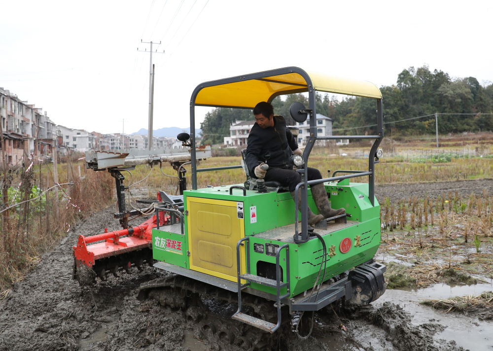 2024年11月26日,在湖南省婁底市雙峰縣荷葉鎮(zhèn),一名農(nóng)機(jī)手在駕駛旋耕機(jī)。新華社記者 王婧嬙 攝