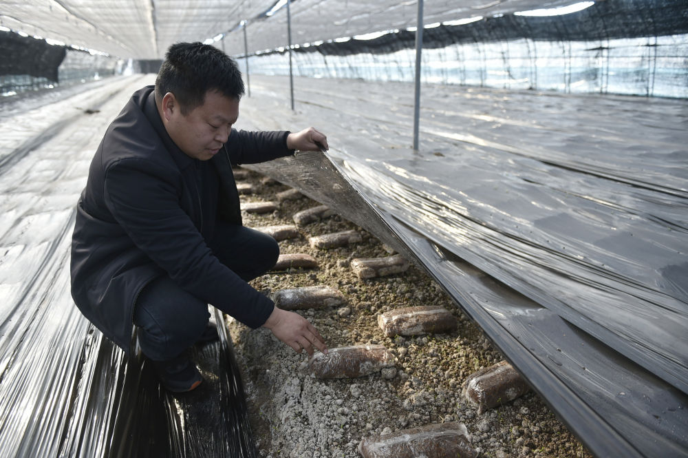 2024年1月11日,村民在河南省寶豐縣周莊珍稀菌產(chǎn)業(yè)園的羊肚菌種植大棚內(nèi)查看生長(zhǎng)情況。周莊珍稀菌產(chǎn)業(yè)園按照“企業(yè)+合作社+農(nóng)戶(hù)”的運(yùn)營(yíng)模式,積極發(fā)展鄉(xiāng)村特色種植產(chǎn)業(yè)。新華社記者 魯鵬 攝