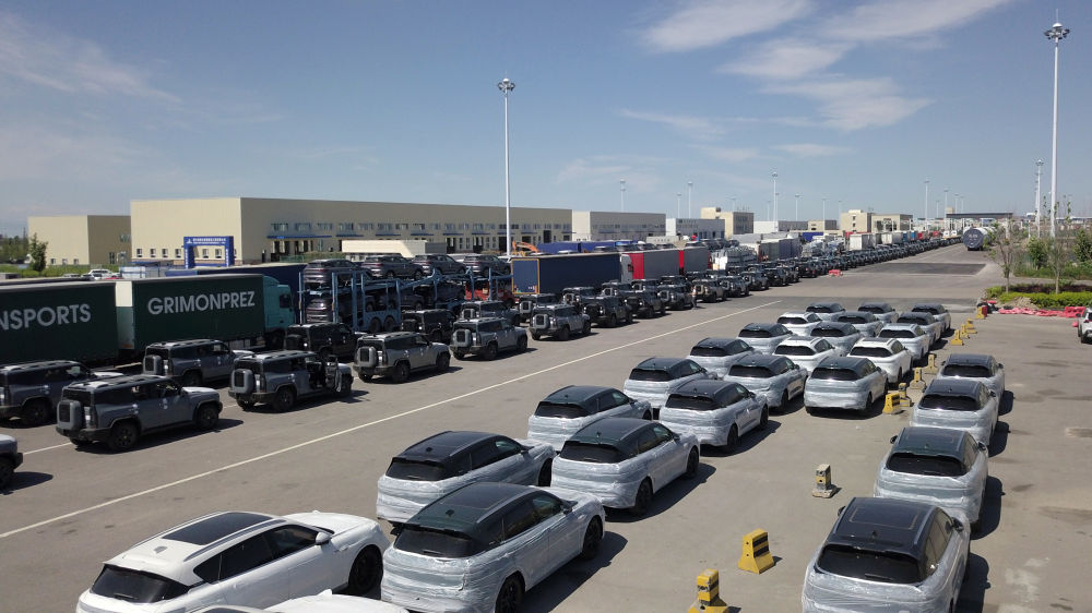 7月11日,在新疆霍爾果斯公路口岸,出口車輛排隊(duì)等待查驗(yàn)出關(guān)(無人機(jī)照片)。作為全國(guó)最大的汽車出口陸路口岸——霍爾果斯口岸今年汽車整車出口數(shù)量迅猛增長(zhǎng)。