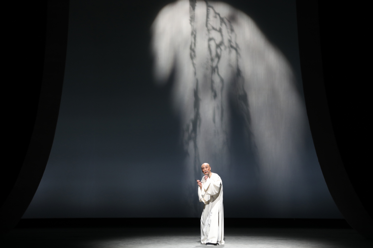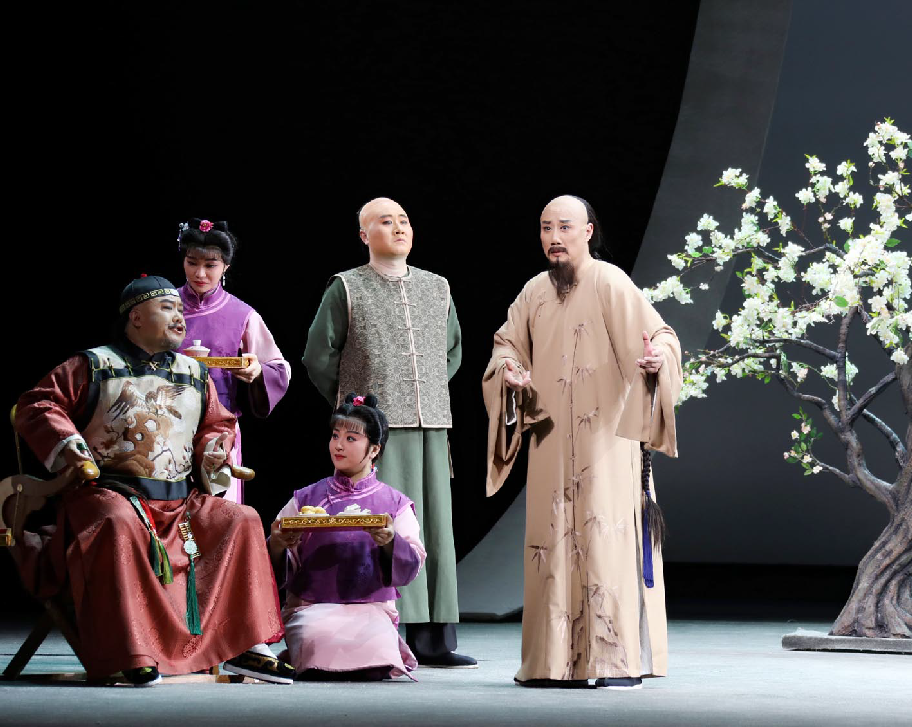 李政成的精湛表演則使創(chuàng)作完美閉環(huán)。在描繪鄭板橋繪畫菊花與蘭花的情景時(shí),他巧妙地采用了文戲武唱的手法,別具匠心地展現(xiàn)了鄭板橋的才華與骨氣。而在劇終部分,長達(dá)十多分鐘、包含56個(gè)核心唱段的唱腔如波浪般層層推進(jìn),將鄭板橋一生的感悟推至觀眾心底。舞臺上的清冷視覺效果與演員熾熱的情感表達(dá)形成了鮮明的對比,在戲劇的張力中,一個(gè)有溫度、有深度、有情懷的鄭板橋仿佛從歷史中走來,真正“活”了起來。