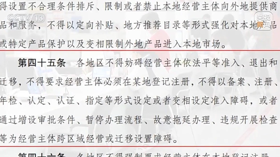 白巖松:構(gòu)建全國統(tǒng)一大市場點多面廣、千頭萬緒,但概括來說,要破立并舉、先立后破。要“立”的是統(tǒng)一的政策、規(guī)則和標準。而要“破”的,則是妨礙統(tǒng)一市場和公平競爭的各種規(guī)定和做法,尤其是地方保護和市場分割。為此,發(fā)改委《指引》中強調(diào)了若干個“不得”,各地不得限制商品和要素跨區(qū)域自由流動,不得妨礙經(jīng)營主體依法平等準入、退出和遷移,也不得違法開展異地執(zhí)法或?qū)嵭挟惖毓茌牭?。這相當于給地方政府劃出了不能碰的“底線紅線”,一旦觸碰,就得承擔(dān)相應(yīng)責(zé)任。有了這些“底線紅線”,阻礙大市場的“籬笆墻”能打破嗎?