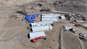 據(jù)了解,每間板房有18平方米,可容納4到5人,板房設(shè)有折疊床、桌子、爐子等設(shè)施。此外,板房自帶防盜門和防盜塑鋼窗,兩窗相對(duì)、通風(fēng)明亮,密封保溫;內(nèi)置多種型號(hào)的插座和照明燈,接通外部電力后即可入住。安置點(diǎn)內(nèi)還設(shè)計(jì)了住宿洗漱、就醫(yī)學(xué)習(xí)等功能區(qū)。讓人印象深刻的是,首批活動(dòng)板房整體結(jié)構(gòu)設(shè)計(jì)多采用折疊式,最快時(shí)8分鐘就能搭建好一間活動(dòng)板房。