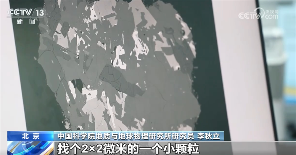 李秋立稱:“我們要在里邊首先找到記錄時間的小礦物,找出來之后變成離子激發(fā)出來,它這里邊哪兒是定年礦物呢?要把它放到最小的這一顆白點,是定年礦物。那么這顆巖屑的實物有多大?大概800微米,在這個800×800微米里邊找個2×2微米的一個小顆粒,在這么小的范圍可以激發(fā)它的,目前只有離子探針這個技術(shù),我們進行了長期訓練,可以把它做到更小的范圍內(nèi)測得更準的數(shù)據(jù)?!?/p>