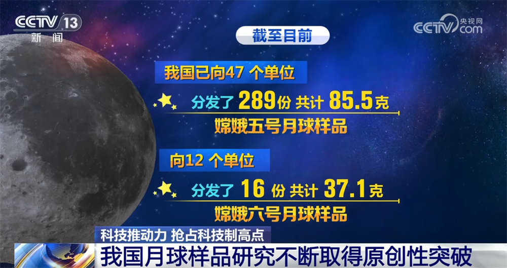 截至目前,我國已向47個單位分發(fā)了289份共計85.5克嫦娥五號月球樣品,向12個單位分發(fā)了16份共計37.1克嫦娥六號月球樣品。利用最新分發(fā)的嫦娥六號月球樣品,中國科學院國家天文臺和廣州地球化學研究所還在月背樣品特征、月球演化活動等領(lǐng)域取得了一批重要成果。2025年,更多月壤研究項目正在陸續(xù)部署和開展,各項研究加速向前,有望幫助我們認識一個“全新”的月球。