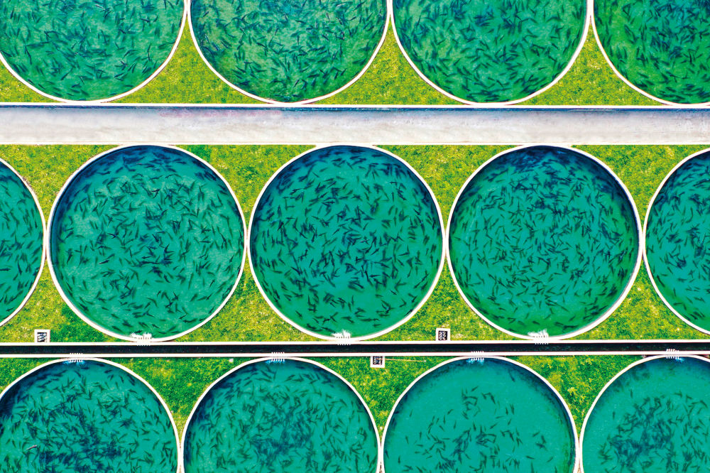 天全水產(chǎn)現(xiàn)代農(nóng)業(yè)園,上百個(gè)依河而建的圓形流水魚池中,鱘魚正在游曳。圖片由天全縣委宣傳部提供。
