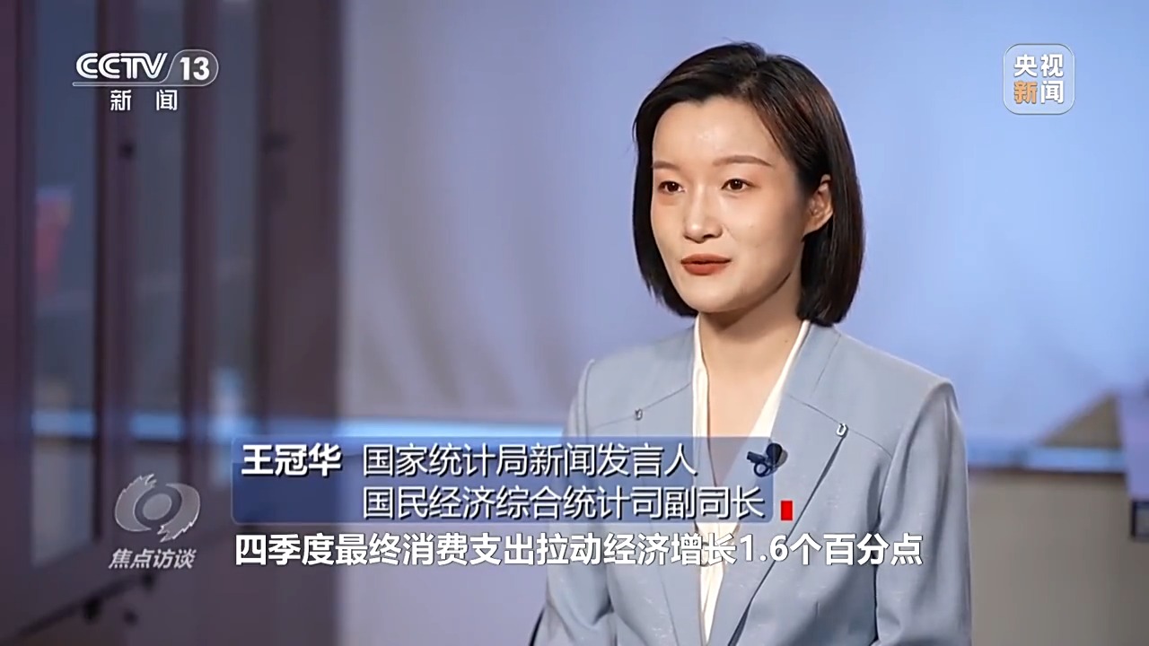 國家統(tǒng)計(jì)局新聞發(fā)言人、國民經(jīng)濟(jì)綜合統(tǒng)計(jì)司副司長 王冠華:四季度最終消費(fèi)支出拉動經(jīng)濟(jì)增長1.6個百分點(diǎn),比上個季度提高了0.2個百分點(diǎn)。以冰雪經(jīng)濟(jì)、首發(fā)經(jīng)濟(jì)為代表的消費(fèi)新場景熱度上升,直播帶貨、即時(shí)零售等消費(fèi)新業(yè)態(tài)快速發(fā)展,還有一些國貨潮品,出海又出圈。這些變化增強(qiáng)了對消費(fèi)市場恢復(fù)的信心,同時(shí)這些新的趨勢也是未來進(jìn)一步擴(kuò)大國內(nèi)需求的重要政策著力點(diǎn)。