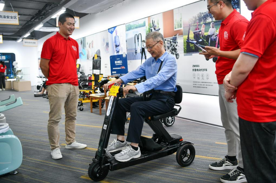 2024年10月12日,一名老人在體驗(yàn)折疊電動(dòng)代步車。位于深圳的老年用品商場(chǎng)“深業(yè)·健康匯”向市民開放,展示居家安全、娛樂生活、智能照護(hù)等50余個(gè)品類、數(shù)百種智能居家適老產(chǎn)品,吸引眾多市民前來(lái)了解、選購(gòu)。新華社記者梁旭 攝