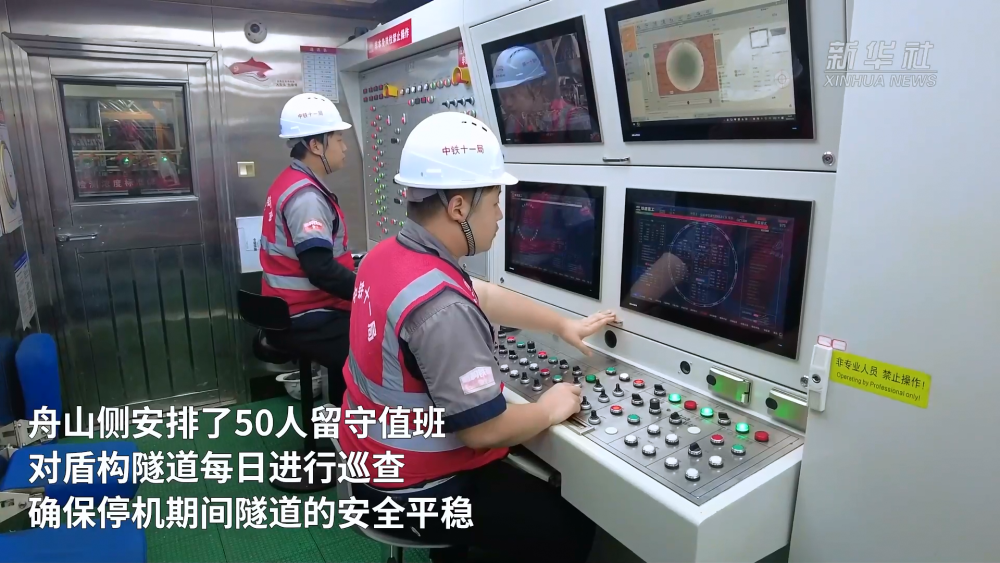 為確保工程穩(wěn)步推進(jìn),春節(jié)期間,金塘海底隧道寧波側(cè)仍有150名工人堅(jiān)守崗位,施工現(xiàn)場24小時(shí)不停工作業(yè);舟山側(cè)安排了50人留守值班,對盾構(gòu)隧道每日進(jìn)行巡查,確保停機(jī)期間隧道的安全平穩(wěn)。