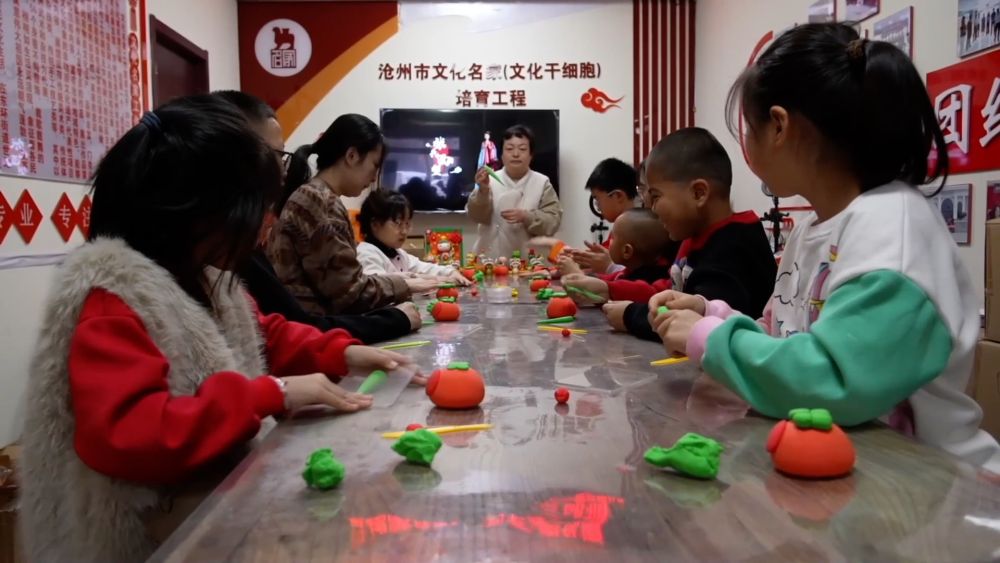 春節(jié)期間,在河北省滄州市新華區(qū)文化名家工作室,非物質文化遺產代表性傳承人張英英為附近居民傳授捏面人技藝。