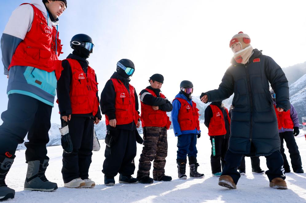 2024年12月25日,在位于烏魯木齊縣的新疆白云國際滑雪場,烏魯木齊縣永豐中學(xué)的學(xué)生在上滑雪課。新華社記者 王菲 攝