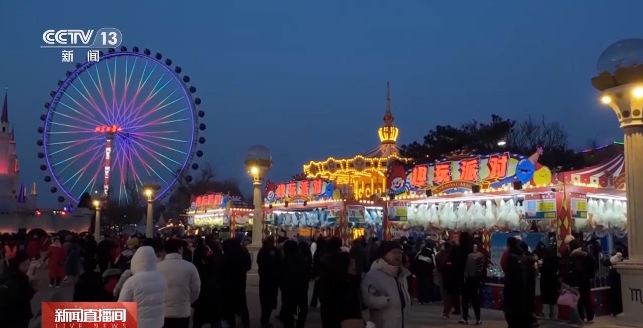 北京:賞燈夜游歡樂多 游樂園里年味濃