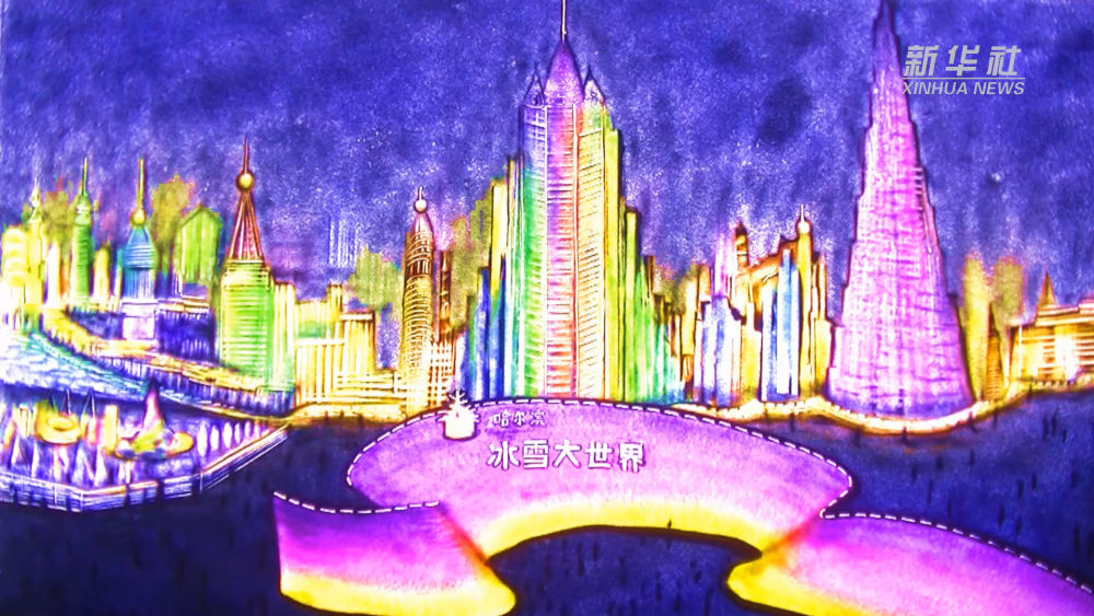 創(chuàng)意沙畫《逐夢亞冬會 相約哈爾濱》用指尖繪就了哈爾濱的冰雪美景以及各類冰雪競技項目,振奮人心。讓我們一起為亞冬會送上一份祝福,祝愿每一位運動員都能在賽場上釋放全部能量,讓夢想在冰天雪地中綻放最耀眼的光芒。