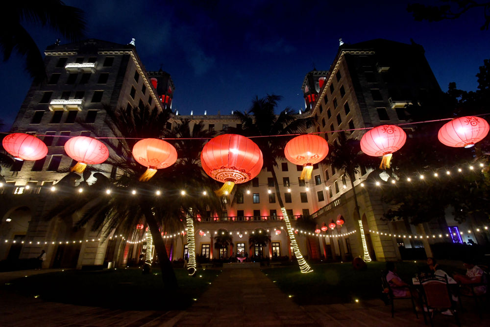1月28日,古巴首都哈瓦那市中心的古巴國家飯店前懸掛中國燈籠。新華社發(fā)(華金·埃爾南德斯攝)