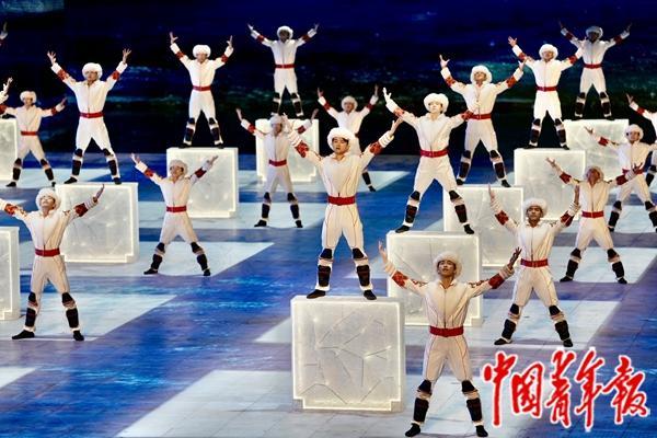 2月7日,哈爾濱,亞冬會(huì)開(kāi)幕式上表演的文藝節(jié)目。中青報(bào)·中青網(wǎng)記者 李雋輝/攝