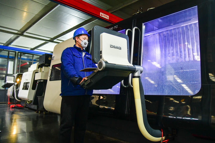 圖為1月7日在山東省淄博市博山區(qū)域城鎮(zhèn)山東博科真空科技有限公司,工人在操作數(shù)控機床。新華社記者朱崢 攝