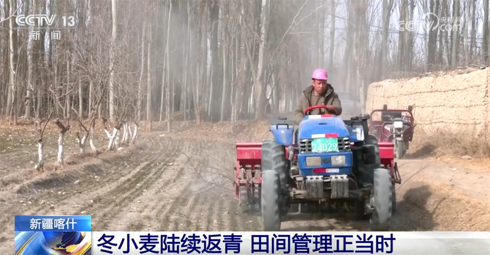 在新疆喀什阿依庫(kù)勒村,記者看到一袋袋肥料已碼放在地頭,拖拉機(jī)正在田間為冬小麥追施返青肥。為確保喀什地區(qū)冬小麥春季管理工作順利進(jìn)行,當(dāng)?shù)剞r(nóng)業(yè)部門(mén)結(jié)合當(dāng)前冬小麥的長(zhǎng)勢(shì)和天氣情況,科學(xué)指導(dǎo),組織做好冬小麥病蟲(chóng)草害防治、保墑防凍、追肥等工作。