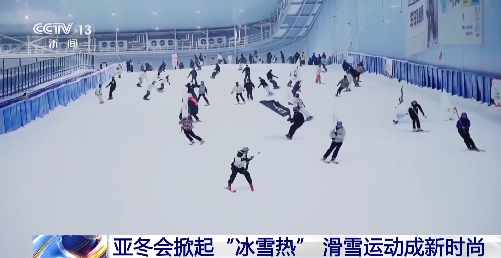 總臺記者 趙雄:我現(xiàn)在是在我國西南地區(qū)最大的室內(nèi)滑雪場,這里常年的溫度是零下6℃。在現(xiàn)場我們看到一共有六個(gè)不同的雪道,涵蓋了初、中、高各個(gè)不同的階段。不僅如此,在這里還有一個(gè)5000㎡的冰雪樂園。受亞冬會(huì)的影響,越來越多的人會(huì)選擇到這里來體驗(yàn)冰雪樂趣。