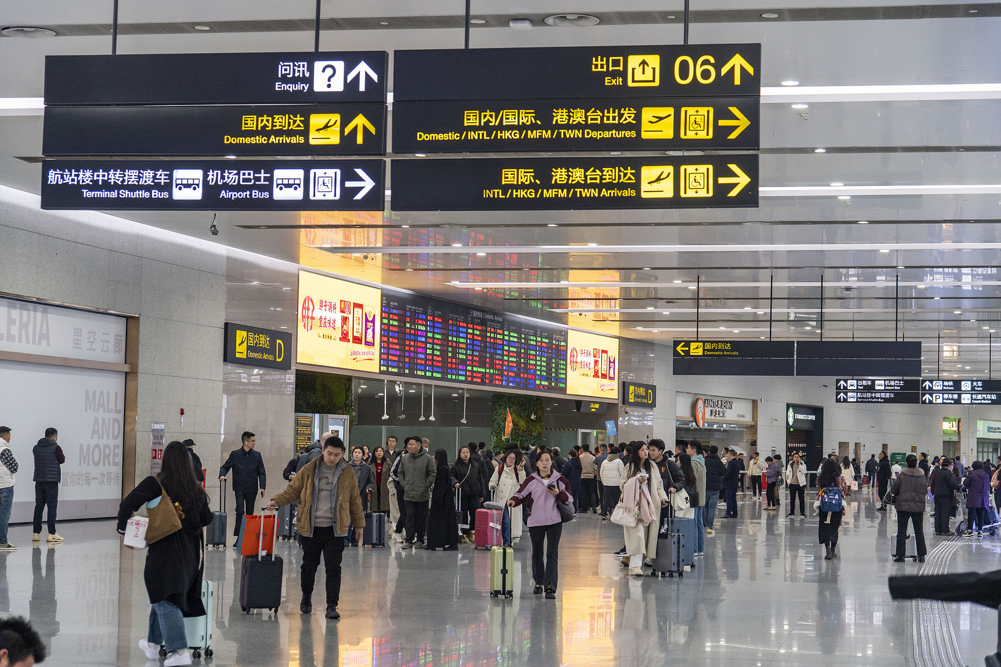 2025年2月16日,重慶江北國(guó)際機(jī)場(chǎng),乘客人來人往。