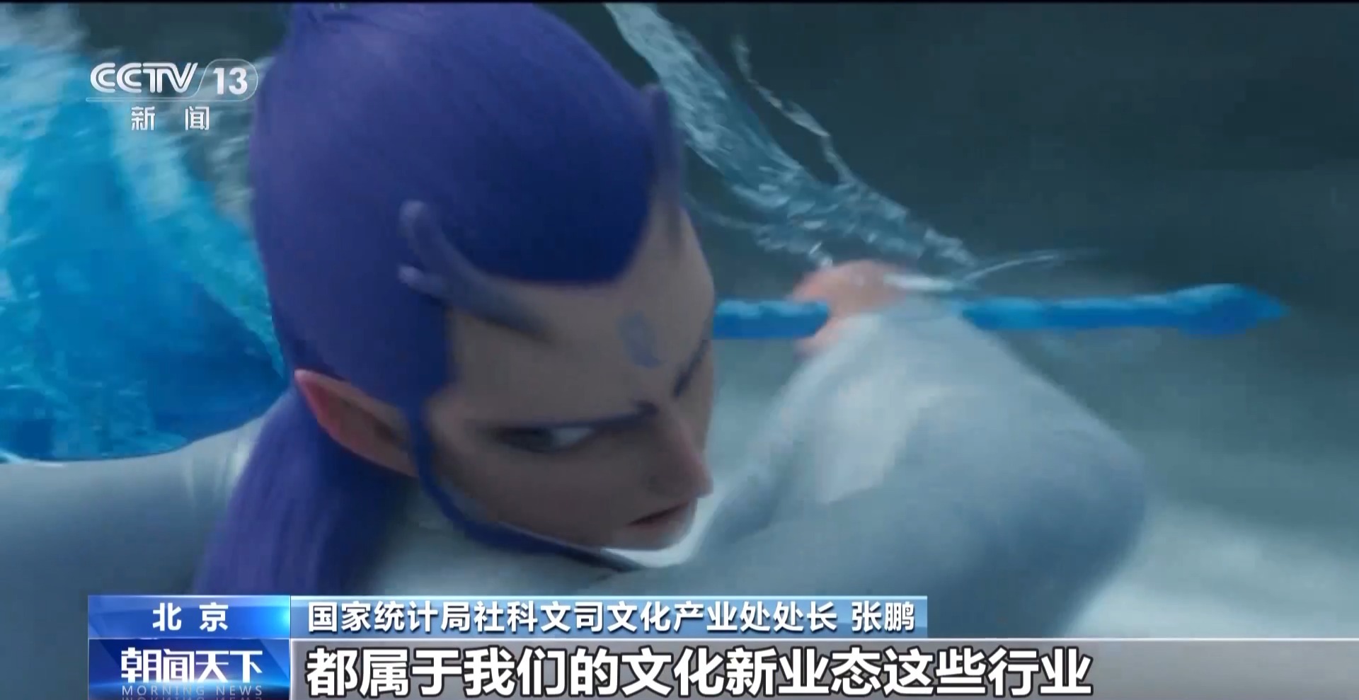 國家統(tǒng)計局社科文司文化產業(yè)處處長 張鵬:我國文化產業(yè)現在正在向增總量、提效益和優(yōu)結構方向發(fā)展。新業(yè)態(tài)特征較為明顯的,比如《哪吒》的出品方,都屬于我們的文化新業(yè)態(tài)這些行業(yè)。整個文化新業(yè)態(tài)它對規(guī)模以上文化企業(yè)營業(yè)收入增長貢獻已經達到三分之二左右,未來文化產業(yè)發(fā)展將會有更多的期待。