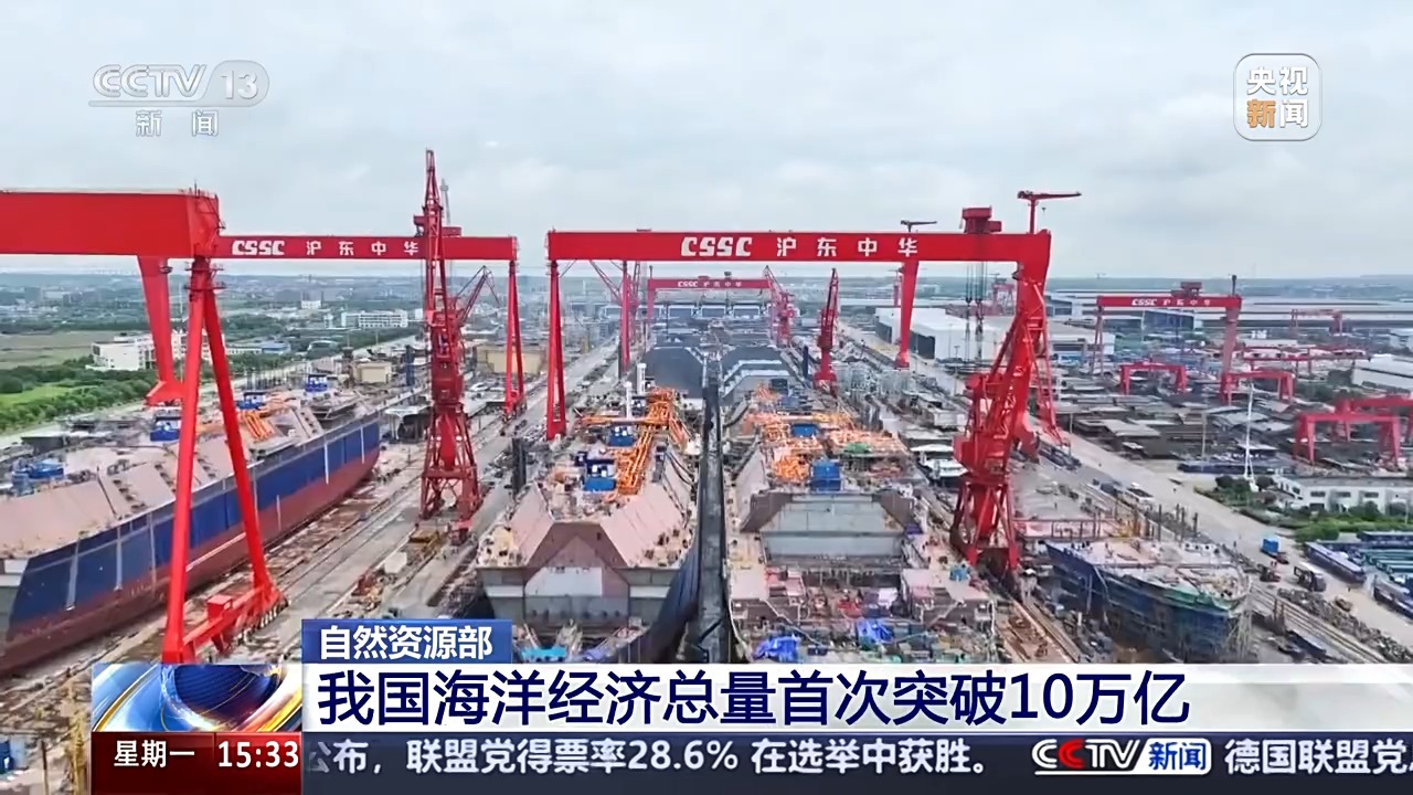 自然資源部今天(24日)發(fā)布《2024年中國(guó)海洋經(jīng)濟(jì)統(tǒng)計(jì)公報(bào)》,《公報(bào)》顯示,2024年我國(guó)海洋經(jīng)濟(jì)總量再上新臺(tái)階,首次突破10萬(wàn)億。