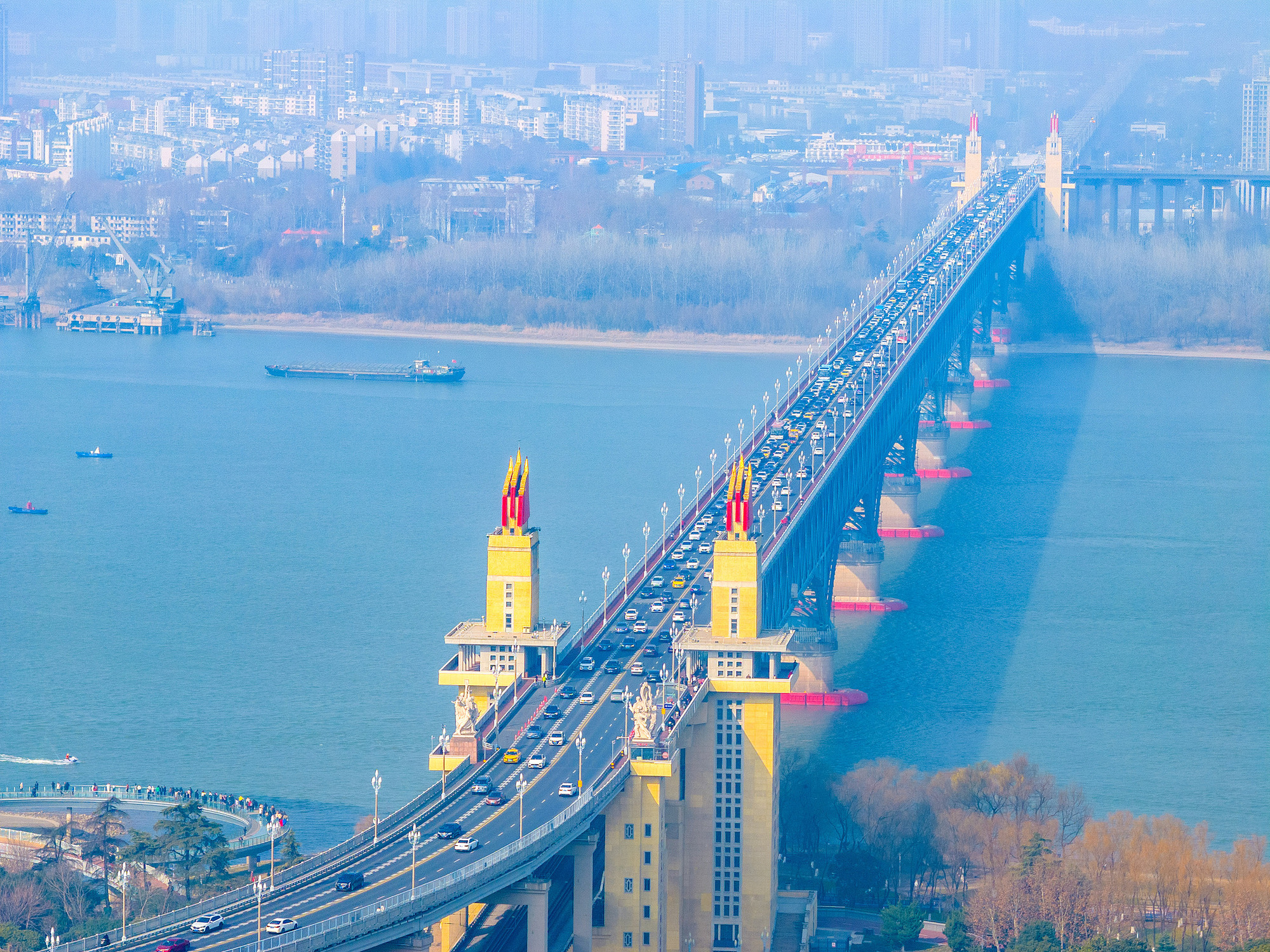 南京長江大橋車水馬龍