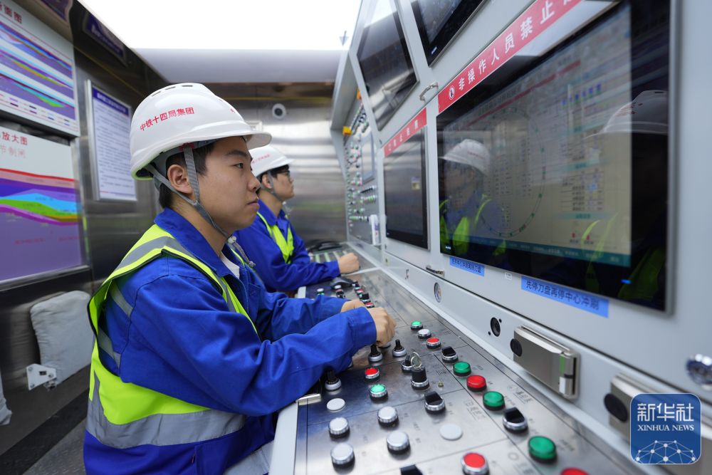 2月25日,中鐵十四局技術(shù)人員在甬舟鐵路金塘海底隧道“甬舟號(hào)”盾構(gòu)機(jī)內(nèi)關(guān)注設(shè)備運(yùn)行情況。