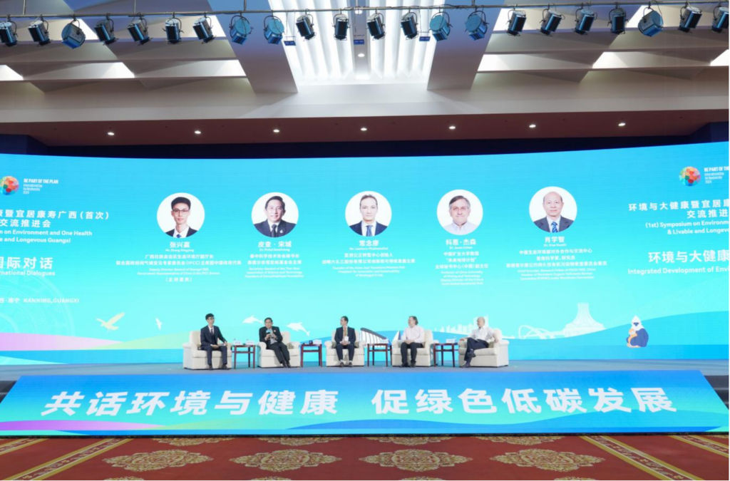 2024年5月18日,張興贏(yíng)(左一)在環(huán)境與大健康暨宜居康壽廣西交流推進(jìn)會(huì)上主持國(guó)際對(duì)話(huà)會(huì)。新華社發(fā)