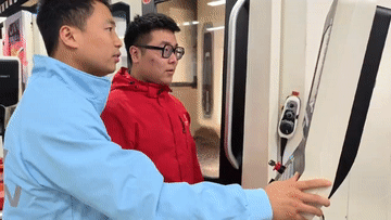 楊登輝(左二)指導(dǎo)學(xué)生對器件數(shù)控銑加工進(jìn)行程序編程。