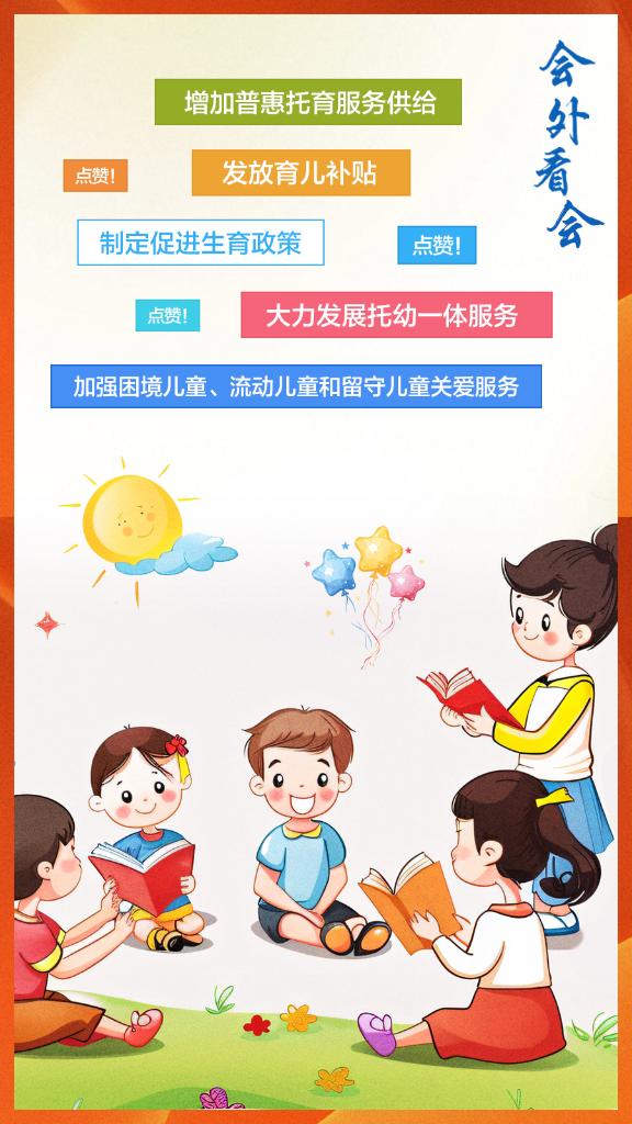 孩子是祖國的花朵。制定促進生育政策,發(fā)放育兒補貼,大力發(fā)展托幼一體服務,增加普惠托育服務供給……今年政府工作報告中關注孩子的這些提法,會外群眾怎么看?
