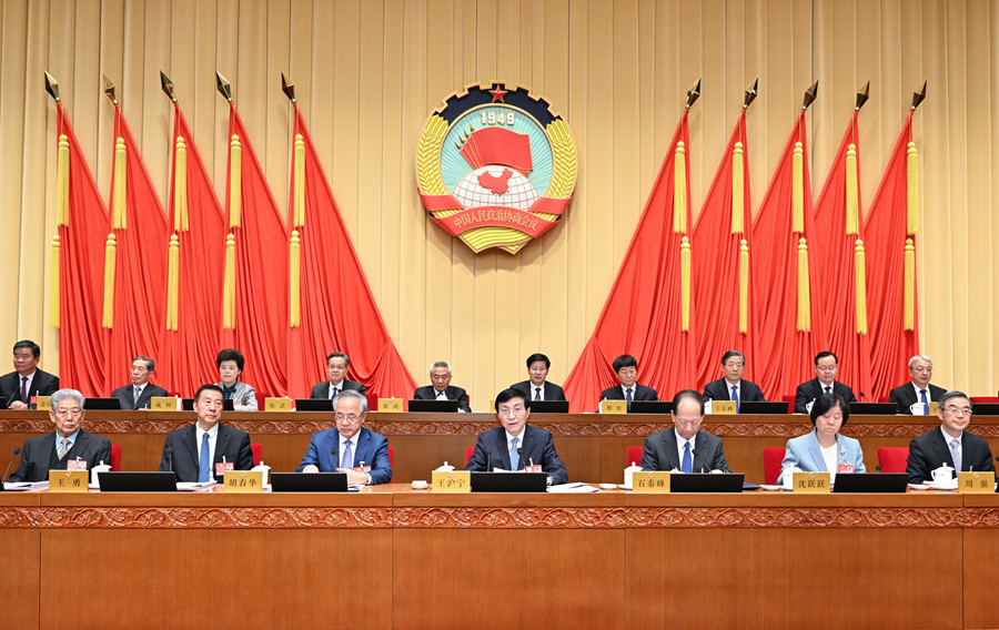 3月9日下午,政協(xié)第十四屆全國委員會常務(wù)委員會第十一次會議在北京舉行。中共中央政治局常委、全國政協(xié)主席王滬寧主持會議。新華社記者 岳月偉 攝