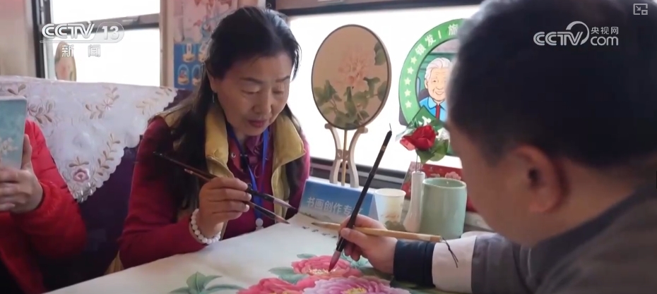 車行期間,列車上安排了豐富的活動(dòng),有歌舞表演、知識(shí)競(jìng)猜,還可以體驗(yàn)制作膠東花餑餑。此外,書畫創(chuàng)作區(qū)、心理咨詢區(qū)、健康監(jiān)測(cè)區(qū)等,也能讓旅客度過(guò)既充實(shí)又快樂(lè)的“慢時(shí)光”。