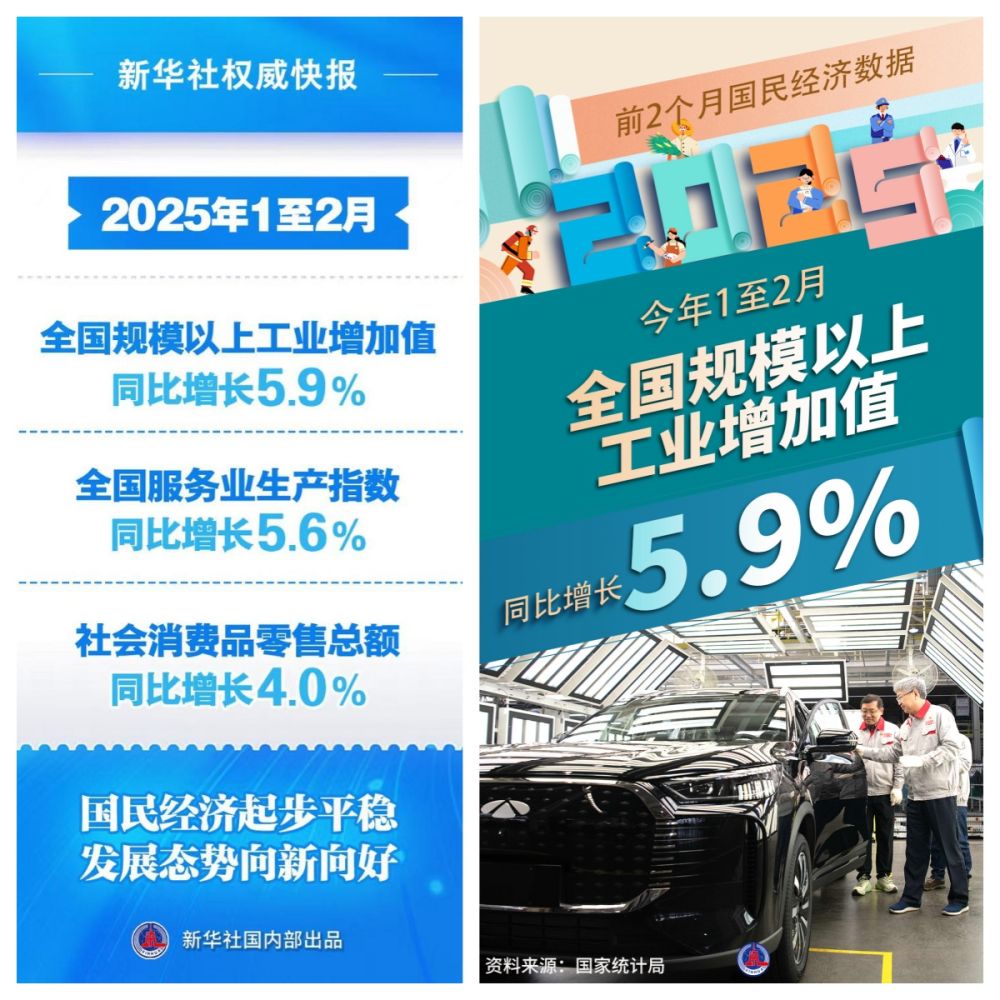 今年前2個月,工業(yè)服務(wù)業(yè)較快增長,消費(fèi)投資繼續(xù)改善,就業(yè)形勢總體穩(wěn)定,新質(zhì)生產(chǎn)力成長壯大,經(jīng)濟(jì)運(yùn)行起步平穩(wěn),發(fā)展態(tài)勢向新向好,展現(xiàn)中國經(jīng)濟(jì)強(qiáng)大韌性。