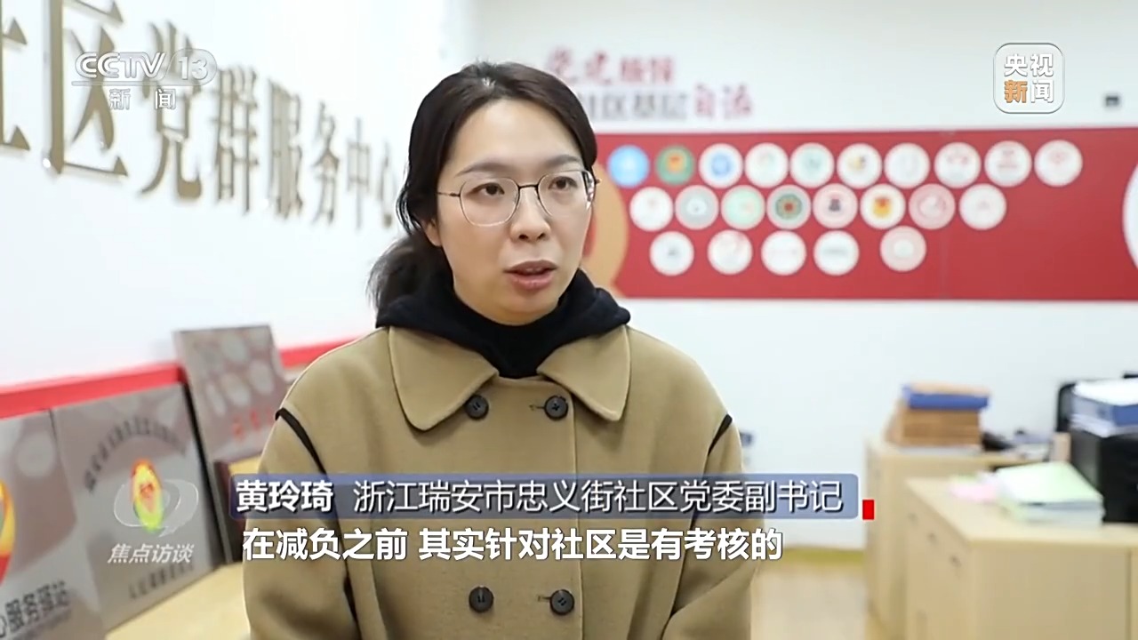 浙江瑞安市忠義街社區(qū)黨委副書記 黃玲琦:在減負(fù)之前,其實(shí)針對(duì)社區(qū)是有考核的,規(guī)定我們每個(gè)月要開展八場(chǎng)活動(dòng),不可能一整個(gè)月都在那里辦活動(dòng)不開展日常服務(wù),我只能是有一些活動(dòng)拿過來湊。要想考核好,只能圍繞著考核細(xì)則轉(zhuǎn),沒辦法。
