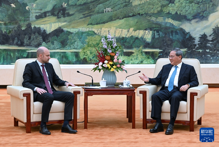 3月27日,國務(wù)院總理李強(qiáng)在北京人民大會堂會見法國外長巴羅。新華社記者 饒愛民 攝