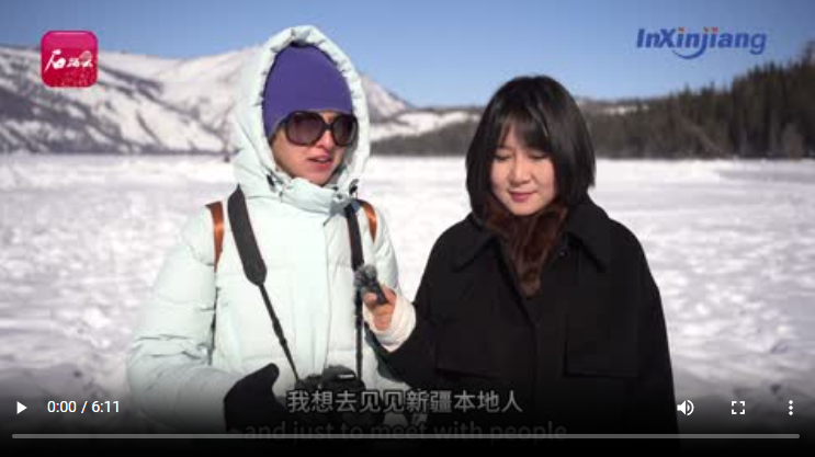 受邀做客本期《InXinjiang》欄目訪談的,是來自白俄羅斯的記者瑪麗娜。這是她第二次到新疆,走在喀納斯湖冰面上,她被眼前的美景和當?shù)刎S富多彩的文化活動深深吸引。瑪麗娜難掩內心歡喜:“現(xiàn)代化基礎設施與自然美景相得益彰,這是我喜歡新疆的理由?!?/p>