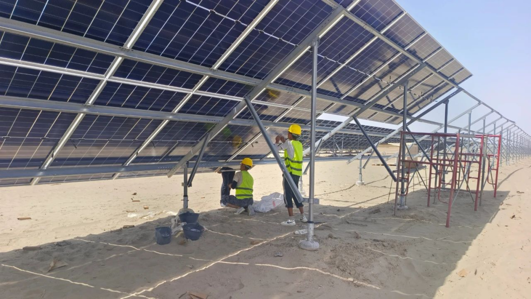 光伏板不僅可以作為發(fā)電設(shè)備,其鋪助設(shè)施還能有效降低地表風(fēng)速、減少風(fēng)蝕,進而穩(wěn)定沙土、防止沙丘移動。此外,光伏板能有效減少地表水分蒸發(fā),有利于沙漠植被生長。地區(qū)通過招商引資方式,引進中電建集團公司,在沙雅縣規(guī)劃實施“光伏+治沙”2萬畝,建設(shè)25萬千瓦光伏產(chǎn)業(yè)園區(qū)低碳轉(zhuǎn)型新能源項目。項目建成后,發(fā)電固沙一舉兩得。