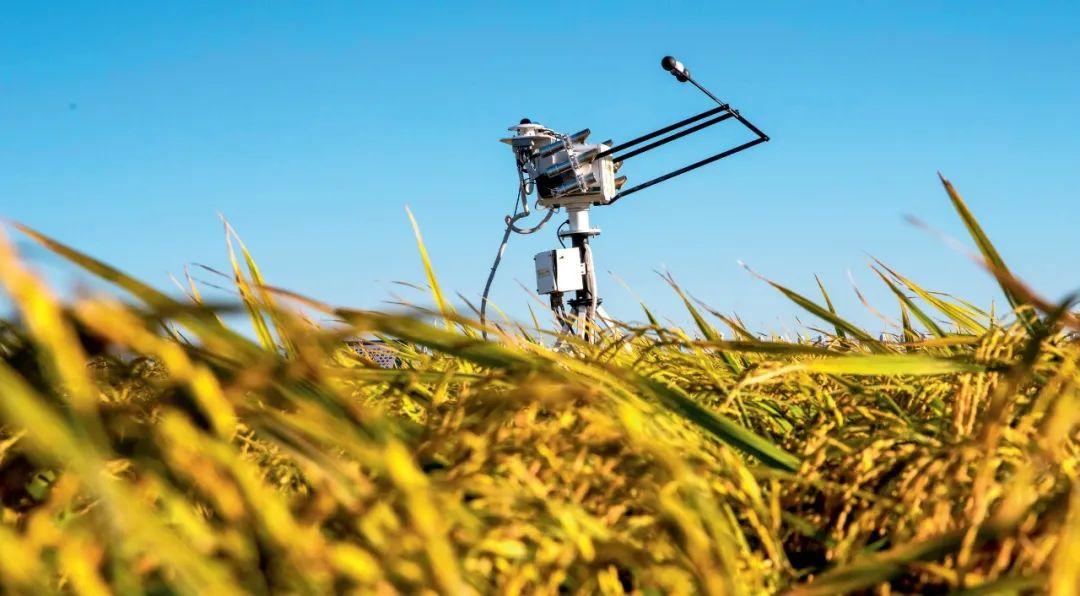 黑龍江省富錦市萬畝水稻科技示范園內(nèi)的氣象監(jiān)測設(shè)備(2022年9月2日攝) 張濤攝 / 本刊