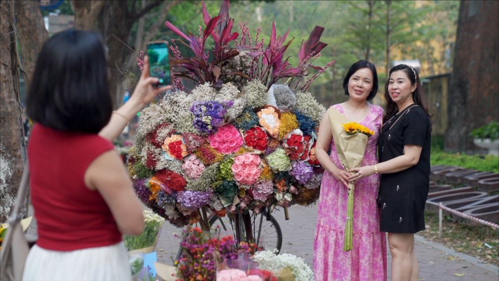 越南首都河內(nèi)是一座愛(ài)花的城市,以自行車(chē)或摩托車(chē)為貨架的“鮮花巴士”遍布大街小巷,成為這座城市獨(dú)特的風(fēng)景線(xiàn)。
