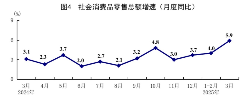 去年9月26日,中央政治局會(huì)議果斷部署了一攬子增量政策,對(duì)穩(wěn)定經(jīng)濟(jì)發(fā)揮了關(guān)鍵作用。今年我國(guó)宏觀政策更加積極有為,前期出臺(tái)的宏觀政策和持續(xù)擴(kuò)容加碼的增量政策疊加發(fā)力,有效擴(kuò)大了需求、促進(jìn)了生產(chǎn)、激發(fā)了活力、增強(qiáng)了信心。3月份,社會(huì)消費(fèi)品零售總額同比增長(zhǎng)5.9%,增速創(chuàng)一年來(lái)新高。