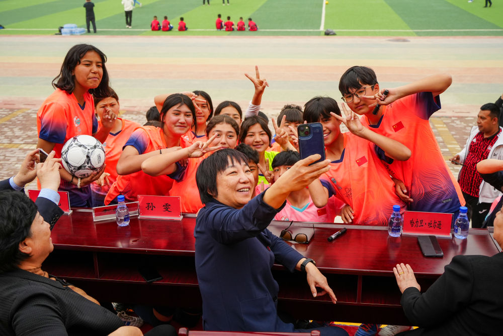 孫雯來到克州觀看她們的比賽并與大家合影
