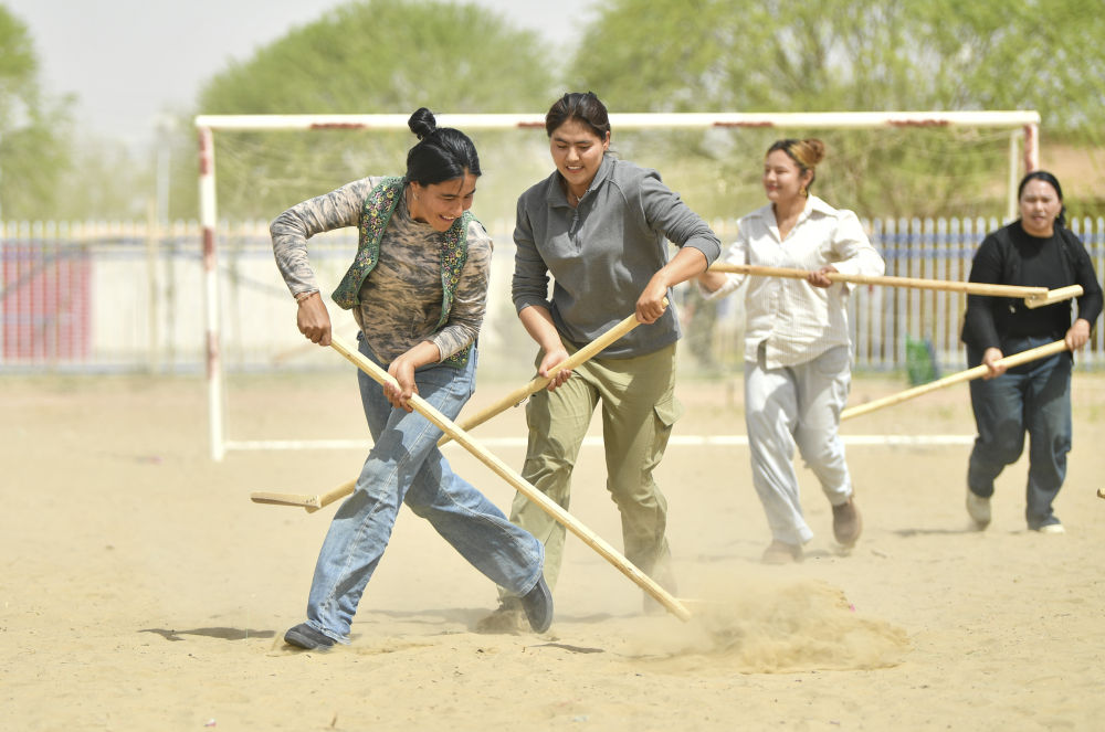 對習慣了在沙海胡楊間放牧、采收大蕓的阿依古麗和隊友們來說,玩麥熱球是一種新的休閑方式。