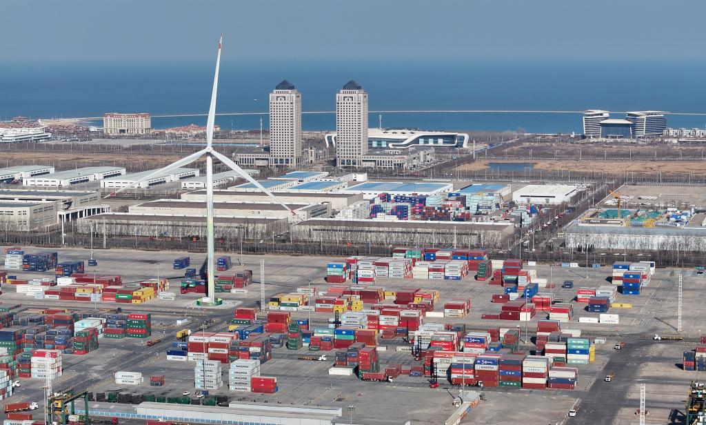 2024年3月20日拍攝的天津自貿(mào)試驗(yàn)區(qū)東疆片區(qū)一景(無(wú)人機(jī)照片)。新華社記者趙子碩 攝