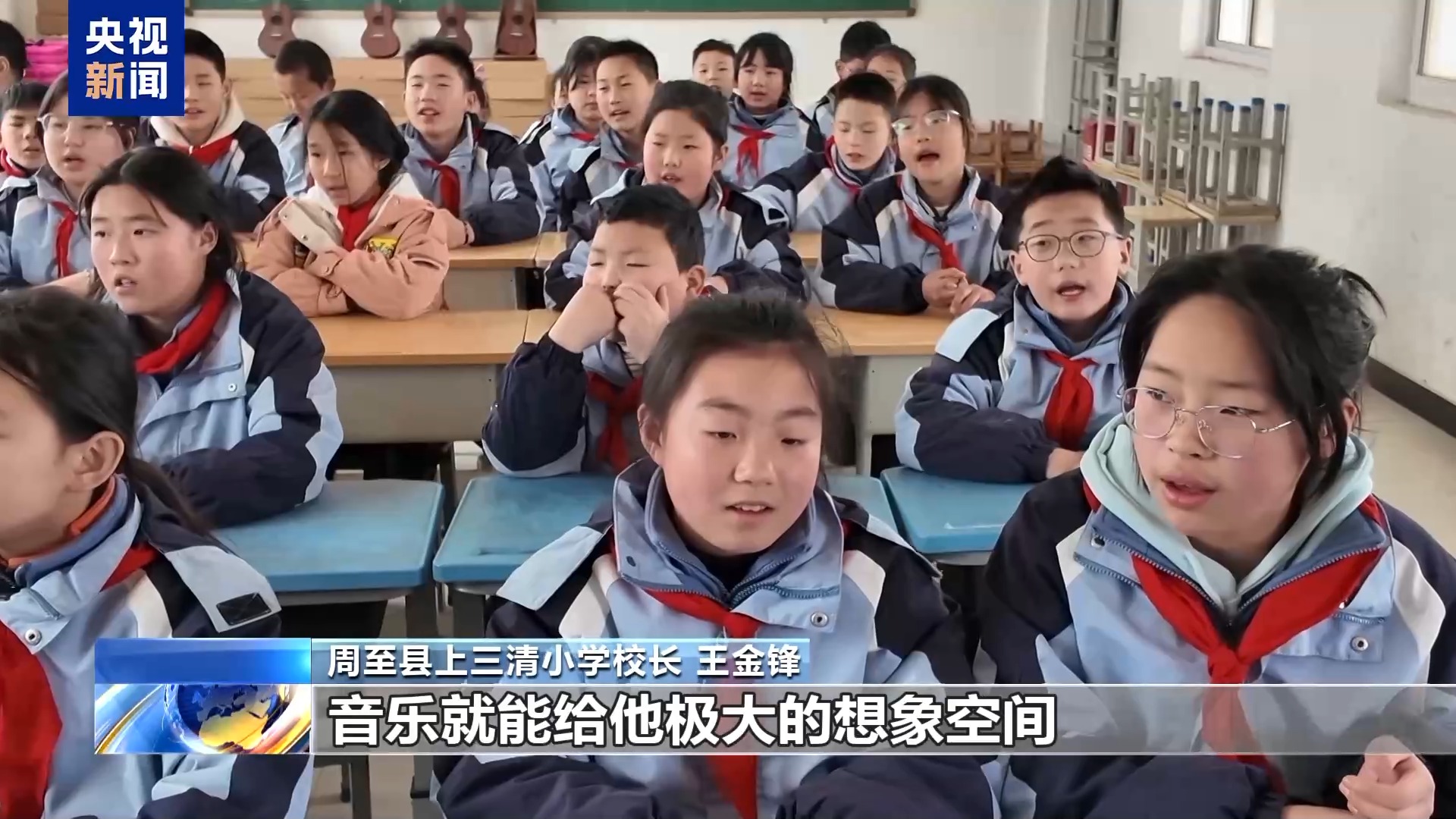 周至縣上三清小學(xué)校長 王金鋒:農(nóng)村學(xué)校大多是留守兒童,爸爸媽媽都在外面打工,爺爺奶奶在家里看護(hù)這些孩子,隔代教育。音樂就能給他極大的想象空間還有發(fā)展空間。孩子們首先對自我有一個(gè)認(rèn)知、提升,他覺得自己可以很自然地站到大家面前去展示自己的才藝。