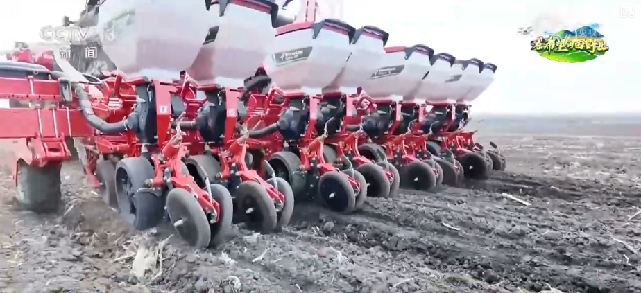 在鶴崗市興安區(qū)的萬畝良田,當?shù)睾献魃鐒倓傄M的智能施肥播種機憑借精準北斗定位系統(tǒng),將玉米種子精準植入黑土,同步完成定量施肥,大大提升了播種效率。