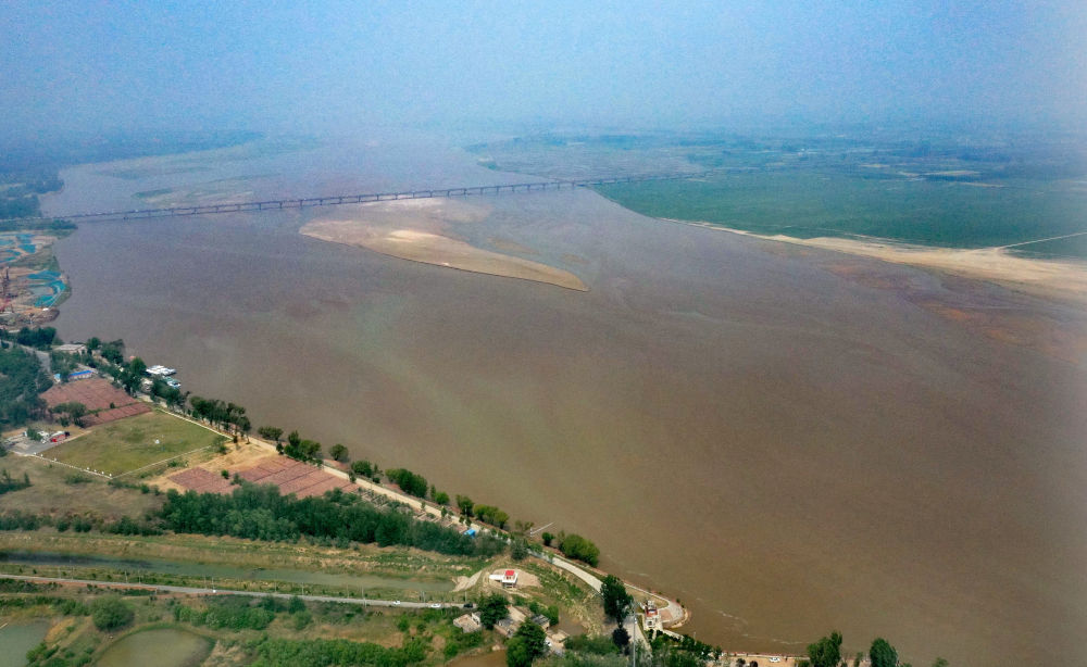 2025年4月27日拍攝的黃河鄭州段(無(wú)人機(jī)照片)。新華社記者 李嘉南 攝