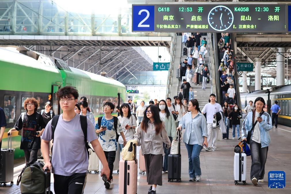 4月30日,旅客在南京火車站下車出站。新華社發(fā)(蘇陽(yáng) 攝)
